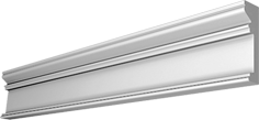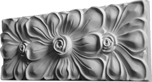 Чаще всего для оформления углов зданий используют различные виды рустовых камней, в это проекте по углам здания разместились импровизированные пилястры, выполненные из молдингов мм0600. Дополнительную нарядность им придали вставки в виде пышных цветочных розеток (де0080).