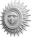 На фронтоне фасада с колонадой и полукруглым балконом размещено жизнеутверждающее полиуретановое панно "Солнце" (де0110).