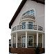 Полукруглые балконы с двух сторон здания поддерживают дорические колонны кл7045, замененные у стен фасада аналогичными полуколоннами. Гладкие стволы колонн служат опорами для ажурного кованного ограждения с традиционными для стиля модерн флористическими мотивами. Несущие конструкции из металлических труб, благодаря обрамлению из архитектурного полиуретана, преобразились в изящные дорические колонны (каждая составлена из двух полуколонн).
