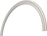 Крыша полукруглой террасы, одновременно являющаяся полом балкона второго этажа, опирается на ряд прямоугольных колонн. Архитектурный декор фасада из полиуретана обладает некоторой пластичностью, что как раз и позволило придать стандартным молдингам непосредственно во время монтажа нужный радиусный изгиб для окантовки краев балкона. Стройность и изящность колоннам придали окантовки из молдинга мм0610.