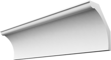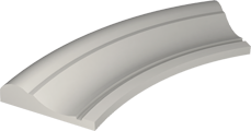 Особенностью этого проекта является оригинальное использование прямого карниза с обратным желобом (кк0020) на радиусном эркере. Для удешевления стоимости декоративного оформления архитектурным декором фасадов было решено отказаться от изготовления индивидуального карниза с индивидуальным радиусом. Карниз стандартного ассортимента был разрезан на сегменты, которые затем настолько искусно подогнаны друг к другу, что снизу возникает ощущение, что карниз монолитный. По его нижнему краю протянулся изящный карниз кк0050 с выпуклым геометрическим орнаментом.