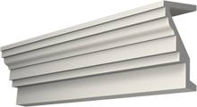 Для придания наружному оформлению фасада более уютного вида классический светлый лепной декор дополнен использованием деревоимитации – поверхность полиуретановых изделий этой серии воспроизводит текстуру натурального дерева. В оформлении крыльца была использована фигурная балка б0025 сложного профиля, образующая оригинальный козырек над ступеньками. Балку поддерживают две темно-коричневые колонны пк7055.