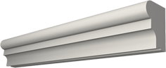 Молдинг мм0400, в котором профиль астрагал переходит в желоб, огибает весь дом по периметру, разграничивая более темный цоколь и светлые стены.