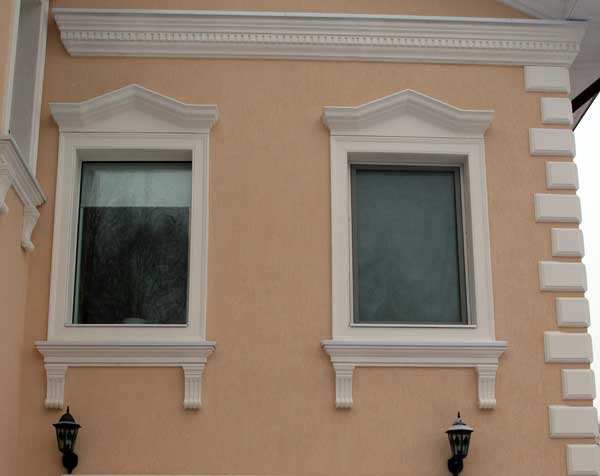Верхним обрамлением окон первого этажа и подоконными элементами всех окон послужили сандрики сс0014 и сс0013.